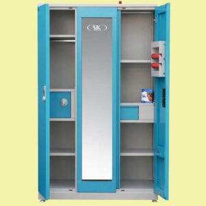 The Dhoom Glass Door Almirah by BK Storewell combines elegance and practicality. Made from high-grade steel with a sleek, anti-rust finish, this almirah features a transparent glass door that allows you to display your items while keeping them protected.